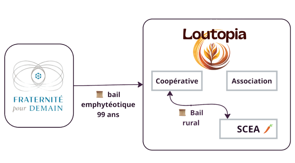 C’est lui qui va acquérir le domaine et le mettre à disposition de Loutopia via un bail emphytéotique de 99 ans. Ce choix fondateur permet de sortir de la logique de propriété pour faire de ce lieu un véritable bien commun